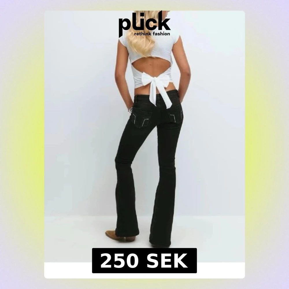 Snygga svarta bootcut jeans med vita kontrastsömmar och detaljerade bakfickor. Jeansen har en klassisk femficksmodell och utsvängda ben som ger en retrovibe. Perfekta för dig som vill ha en trendig och bekväm look.