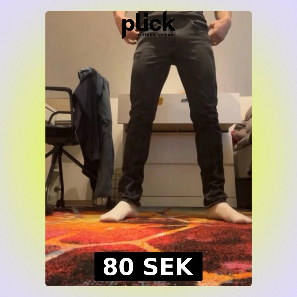 Säljer ett par svarta slim fit jeans med klassisk femficksdesign och normal midja. Jeansen har en stilren look och sitter tajt längs benen. Perfekta för dig som gillar en enkel och modern stil.