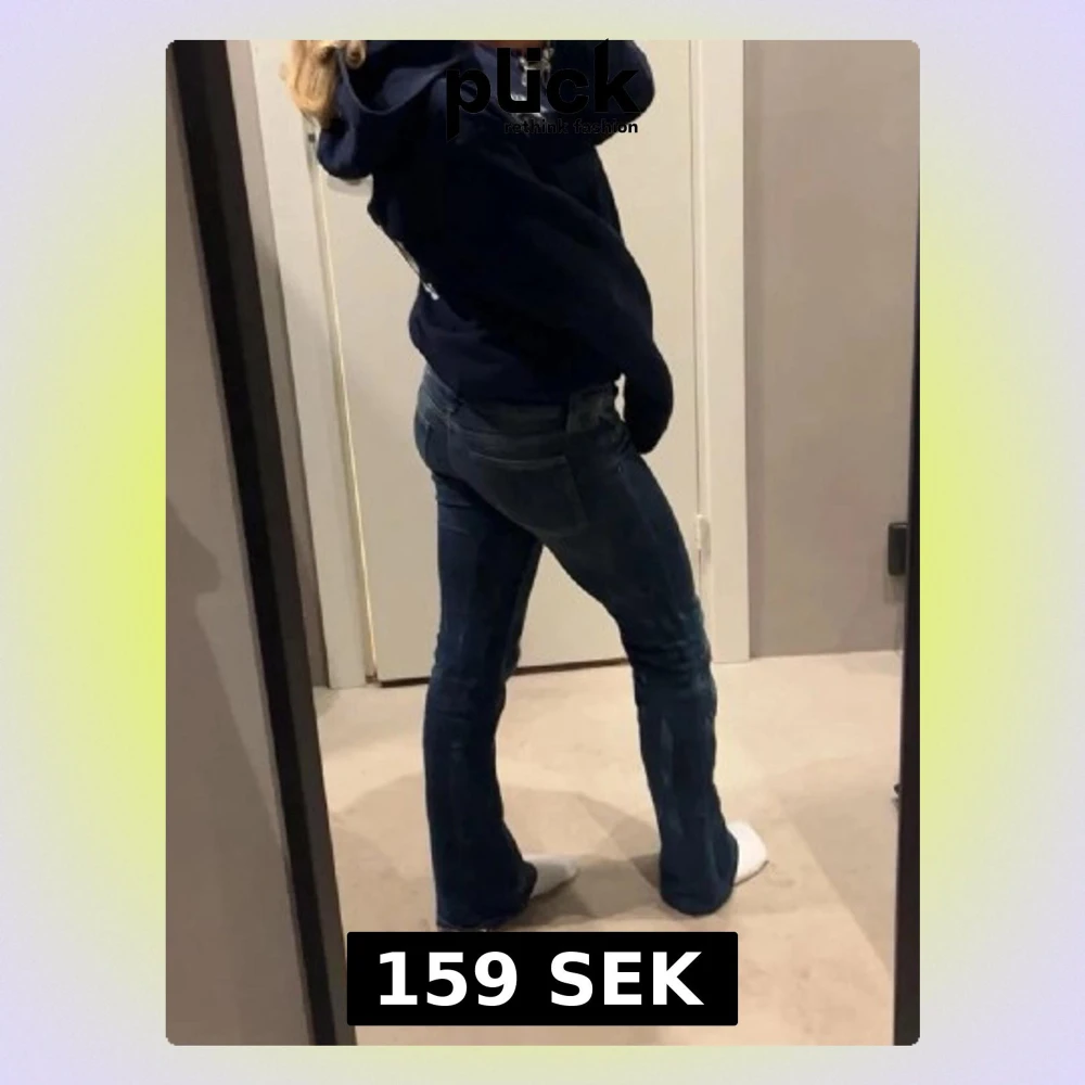 Säljer ett par mörkblå bootcut jeans med låg midja och slitningar framtill. Jeansen har klassisk femficksdesign och är tillverkade i ett stretchigt denimtyg som sitter snyggt. Perfekta för en avslappnad och trendig look. Dem e uppsydda, passar nån som e runt 150-154❤️❤️