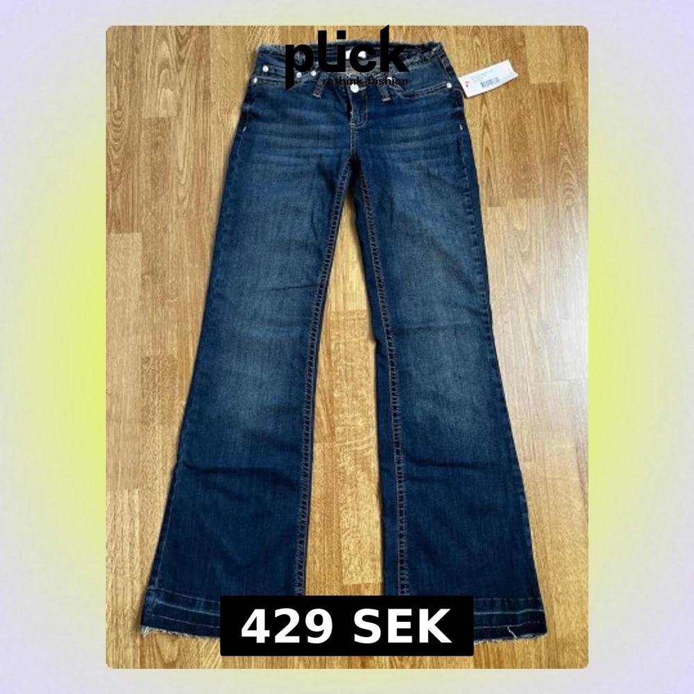 Snygga helt nya populära mörkblå lågmidjade utsvängda jeans från Nelly i storlek 34. Modellen heter No Waist Bootcut Jeans