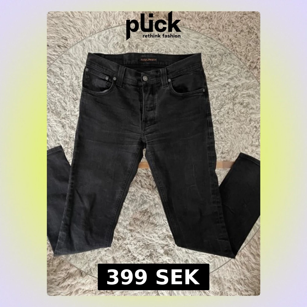 Nudie Jeans Grim Tim Klassiska svarta jeans från Nudie i mycket bra skick. Storlek: 32/34 Skick: 8/10 inga skavanker såsom hån eller fläckar. Mått: •Midja: 41cm •Ytterben: 101cm •Innerben: 73cm Skriv vid intresse!