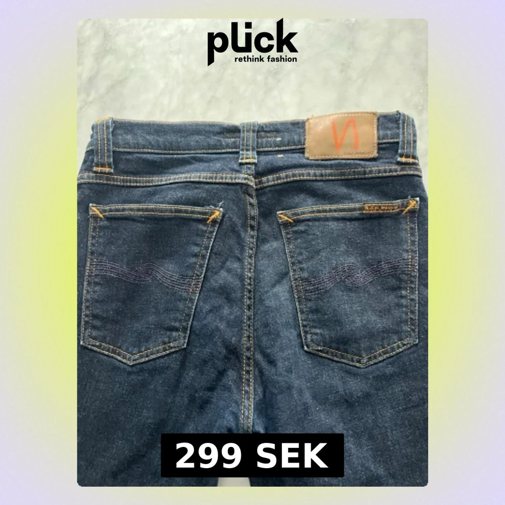 Snygga mörkblå jeans från Nudie Jeans med klassisk femficksmodell och kontrastsömmar. Jeansen har en rak passform och är tillverkade i slitstark denim av bomull. Nudie-logga på bakfickan och patch i läder baktill i midjan. Modell High kai.