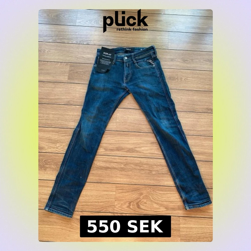 Snygga blå slim fit jeans från Replay med klassisk femficksdesign och kontrastsömmar. Jeansen har en lätt tvättad look och är tillverkade i stretchigt denim för extra komfort. Perfekta för en trendig och avslappnad stil.