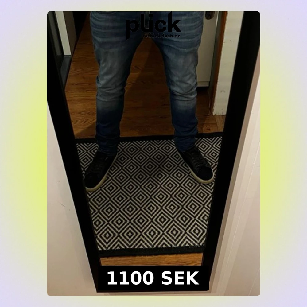 Säljer ett par blå slim fit jeans med snygga tvättade detaljer och lätt slitning. Jeansen har klassisk femficksdesign och smal passform som sitter tajt längs benen. Perfekta för en trendig och avslappnad stil.