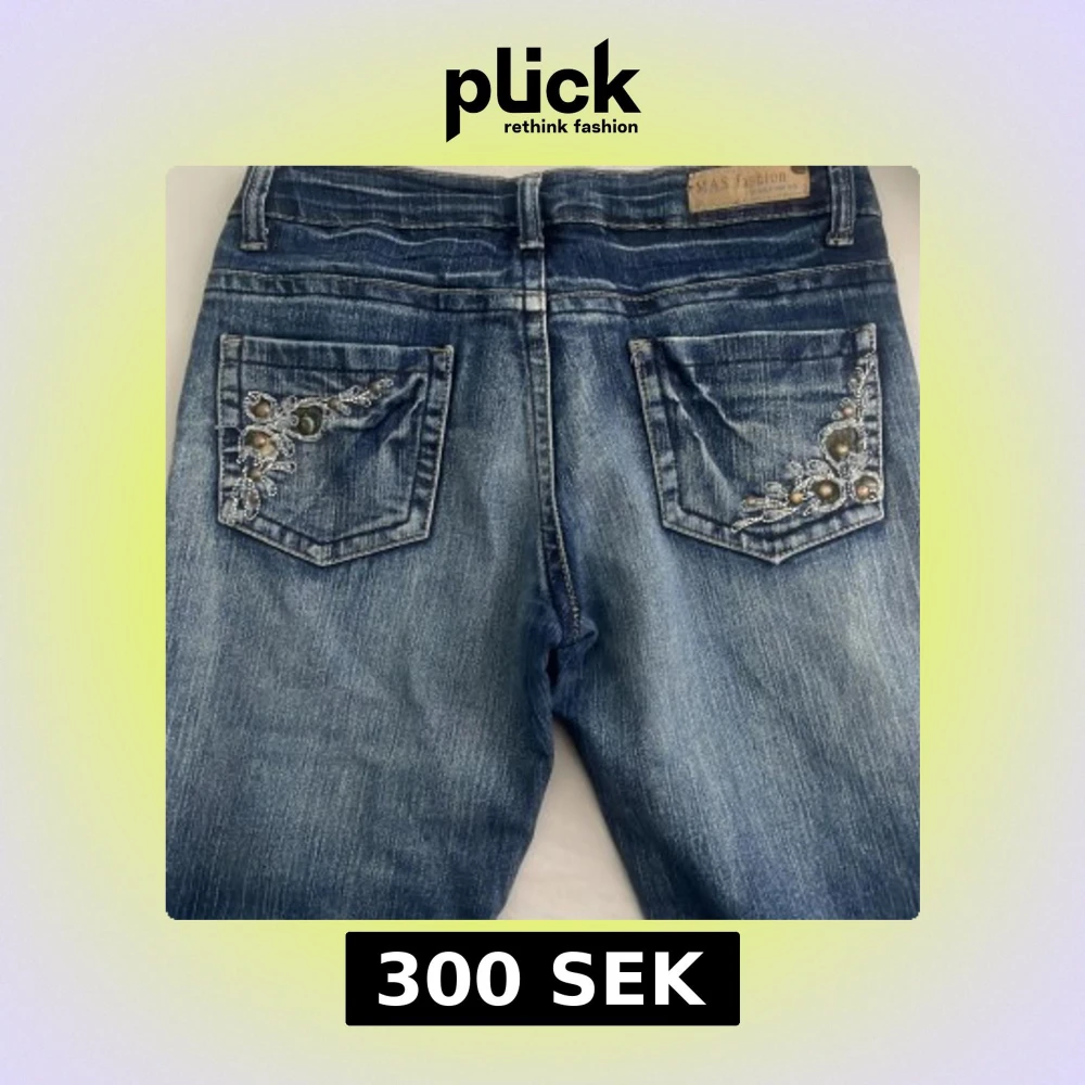 Snygga blå jeans från MAS Fashion med slitningar och dekorativa broderier samt pärlor på både fram- och bakfickor.