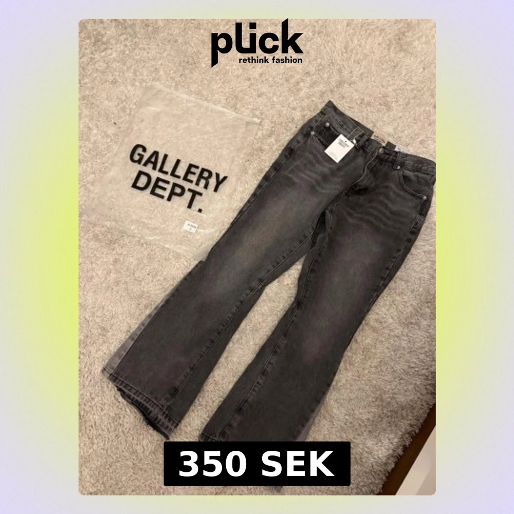 Säljer ett par svarta bootcut jeans från Gallery Dept. Jeansen har klassisk femficksdesign, raka ben med lätt utsvängning och är tillverkade i kraftig denim. Perfekta för dig som gillar en avslappnad men trendig look.
