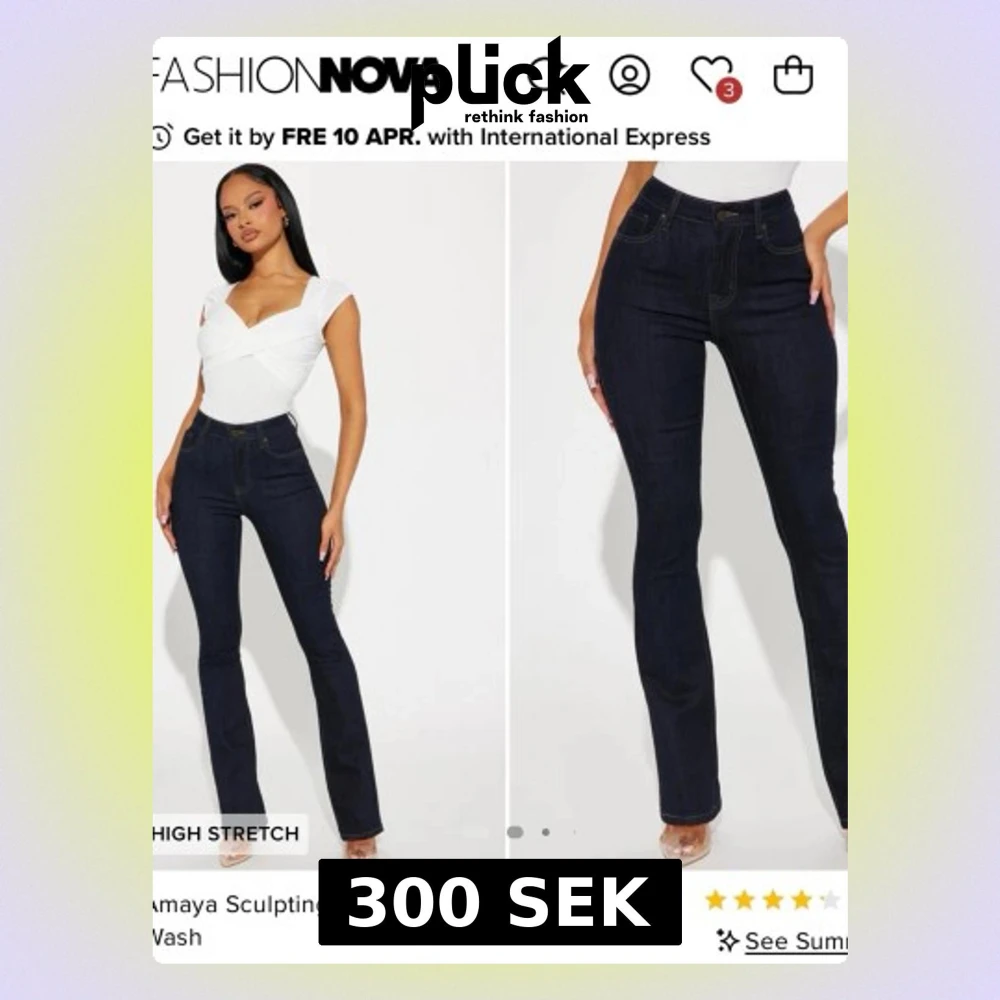 Mörkblå bootcut jeans med hög midja och stretchigt material från Fashion Nova. Jeansen har klassiska fem fickor, kontrastsömmar och en skulpterande passform som framhäver benen. Perfekta för en trendig och bekväm look.
