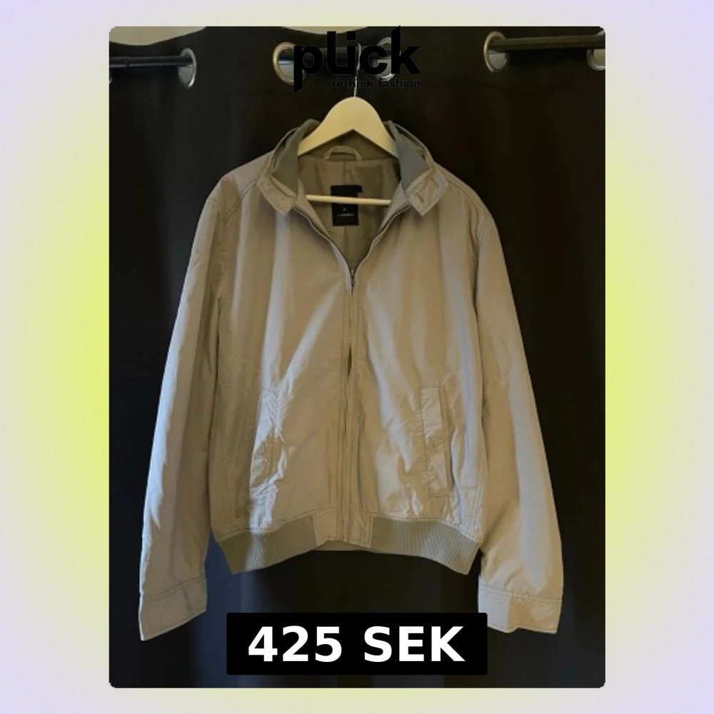 Säljer två stilrena bomberjackor, en i beige och en i svart. Båda har dragkedja framtill, ribbade muddar och fickor på sidorna. Klassisk passform och minimalistisk design, perfekta för en trendig look. Materialet är tunt och lätt, troligen polyester eller nylon.