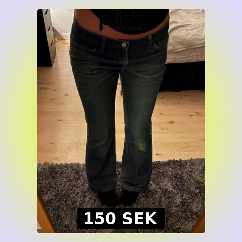 IBS low waist bootcut jeans Säljer ett par mörkblå IBS jeans i low waist modell med bootcut ben. Storlek: Ingen storlek står i, uppskattas till ca XS/S. Midja: 41 cm tvärs över (mätt platt). Säljes då de inte används längre. 💙
