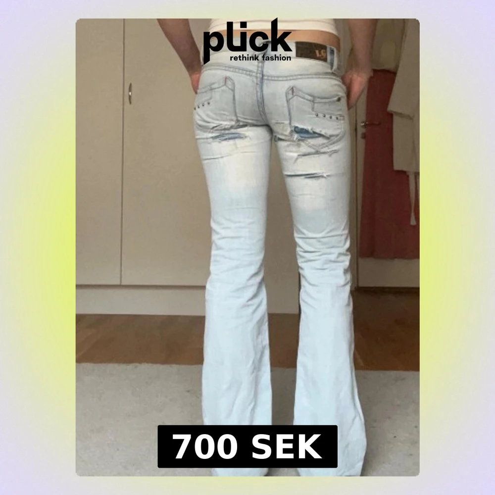 Vintage lågmidjade bootcut jeans med slitningar! Midjemått rakt över: 38 Innebrenslängd: 86 Grenmått: 18 Bredd på benen längst ner: 20.5 Omsydda vid rumpan därav slitningarna men det är ingenting som stör utan ger mer karaktär och påverkar inte kvaliten i stort, skriv vid funderingar/fler bilder💞