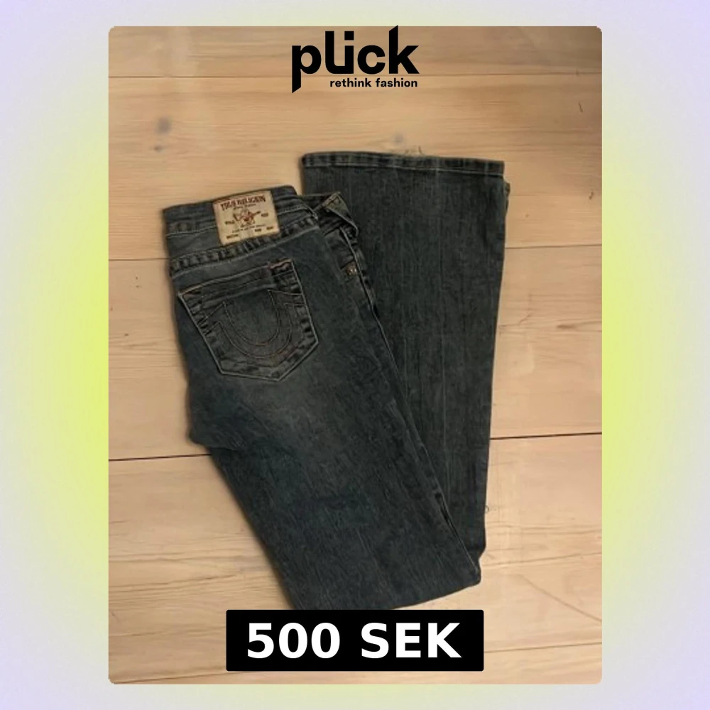 Säljer ett par blå bootcut jeans från True Religion. Jeansen har låg midja. w 27 passar mig bra i längden som är 168💕 väldigt bra skick. Kom med prisförslag