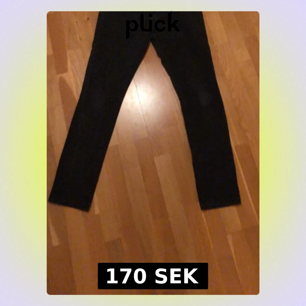 Säljer ett par svarta slim fit jeans med raka ben och klassisk femficksmodell. Jeansen har en enkel och stilren look, perfekta till sneakers eller boots. Materialet ser ut att vara en bomullsblandning med lite stretch för extra komfort.