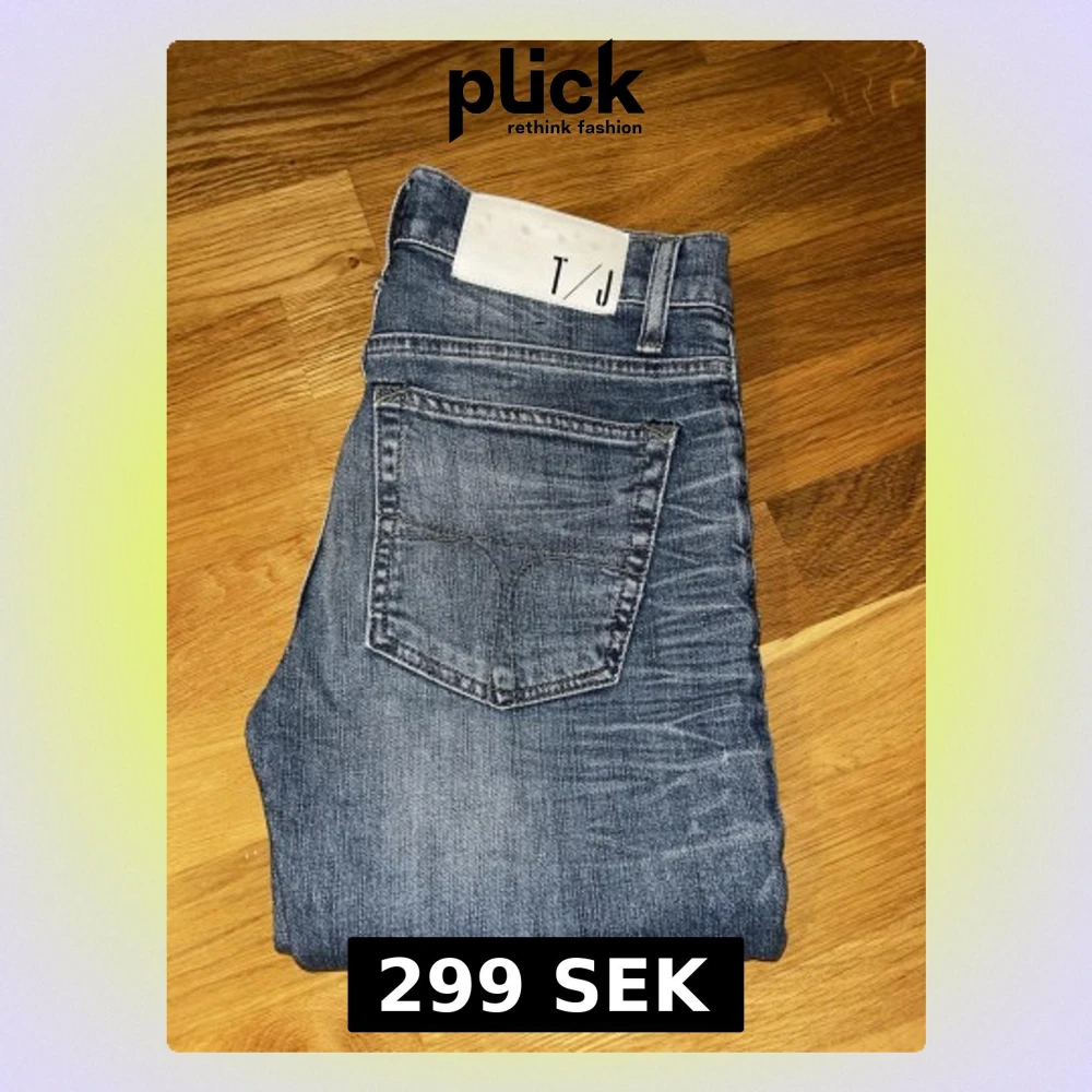 Snygga blå slim fit jeans från T/J med klassisk femficksdesign och diskreta slitningar. Jeansen har en något tvättad look och raka ben. Tillverkade i mjukt denimtyg som ger en bekväm passform. Perfekta för en avslappnad och trendig stil.