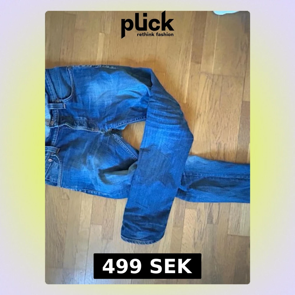 Säljer ett par klassiska blå jeans från Nudie Jeans Co. Jeansen har fem fickor, normal midja och raka ben. Tillverkade i slitstark denim med snygga tvättade detaljer och kontrastsömmar. Perfekta för en avslappnad och trendig stil. Anledningen av priset är att det är ett litet hål på byxorna men nudie erbjuder gratis lagningar i butik