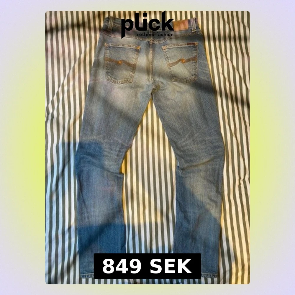 Säljer ett par klassiska blå jeans från Nudie Jeans Co med snygga kontrastsömmar och femficksmodell. Jeansen har en rak passform och är tillverkade i slitstark denim. Perfekta för dig som gillar tidlös och avslappnad stil.