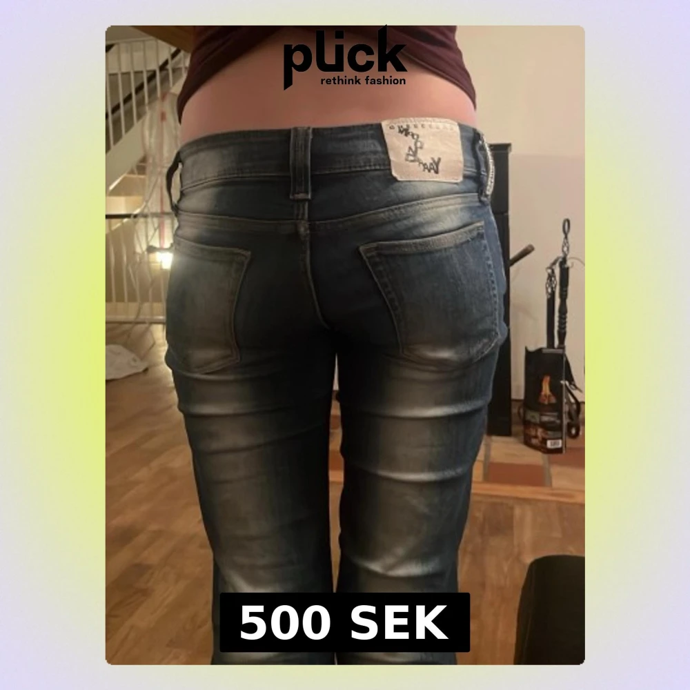 Säljer ett par blå bootcut jeans från Weekday med snygg slitning och klassiska bakfickor. Jeansen har en ljus tvätt och utsvängda ben, vilket ger en retro och avslappnad vibe. Perfekta för dig som gillar en tidlös jeansstil. Säljs ej längre