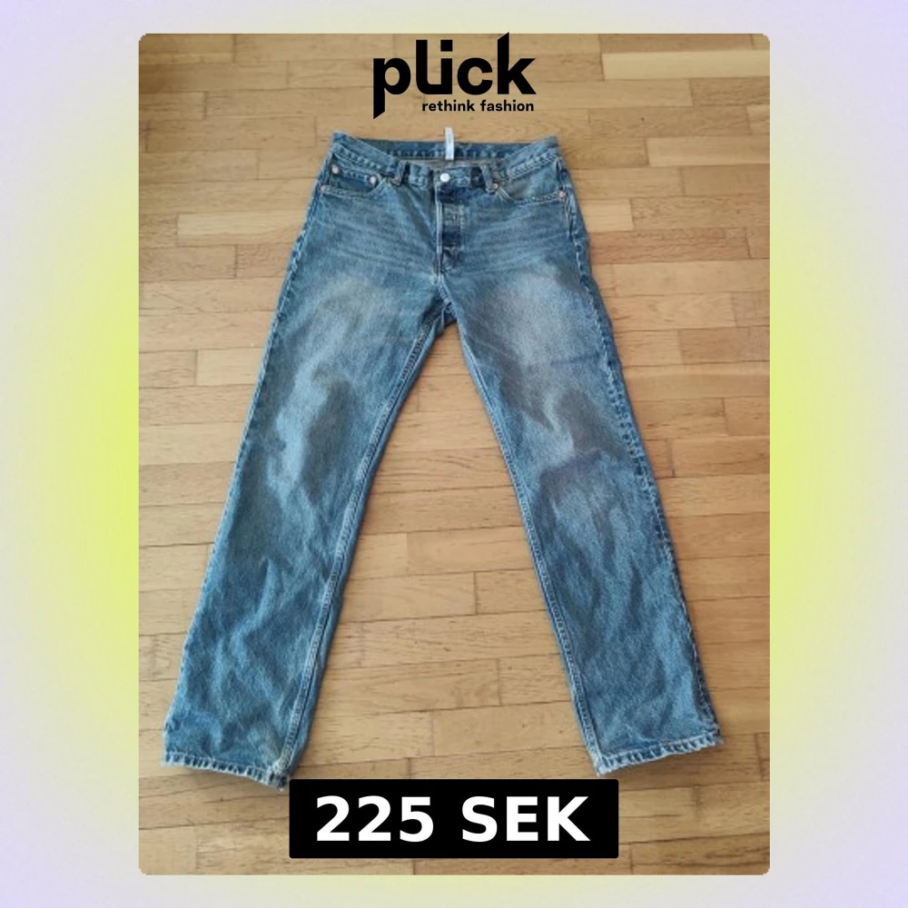 Säljer ett par blå jeans med rak passform från Weekday. Jeansen har fem fickor, knappgylf och är tillverkade i ett slitstarkt denimtyg. Perfekta för en avslappnad och tidlös stil. Storlek W31 L32