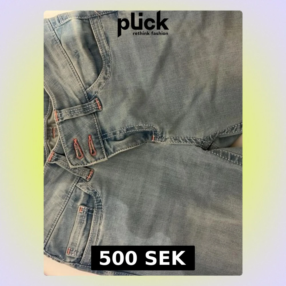 Snygga ljusblå jeans med rosa kontrastsömmar och coola broderade detaljer på bakfickorna. Stitch jeans från Nelly, helt nya och oanvända. Storlek 36 i modellen short. Kontakta för fler bilder ❤️