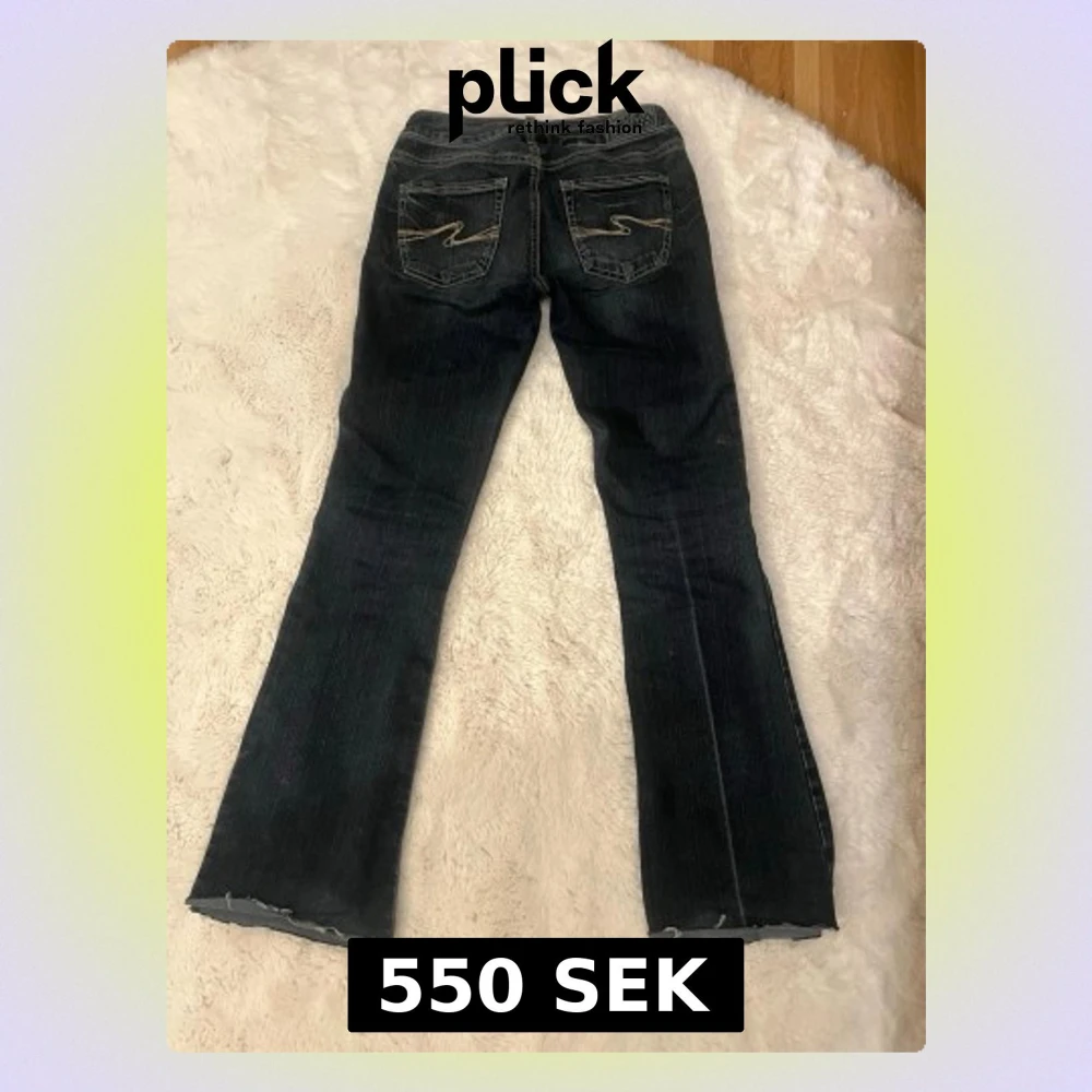 Snygga mörkblå bootcut jeans från Silver Jeans Co, jeansen har snygga detaljer som gör de unika. Jag är 156 och de passar mig bra i längden!