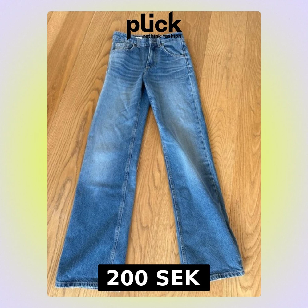 Säljer ett par klassiska blå jeans med rak passform och fem fickor. Jeansen har en snygg tvättad look och bälteshällor i midjan. Perfekta för en avslappnad stil och tillverkade i slitstark denim. Storlek 32 och låda i midjan