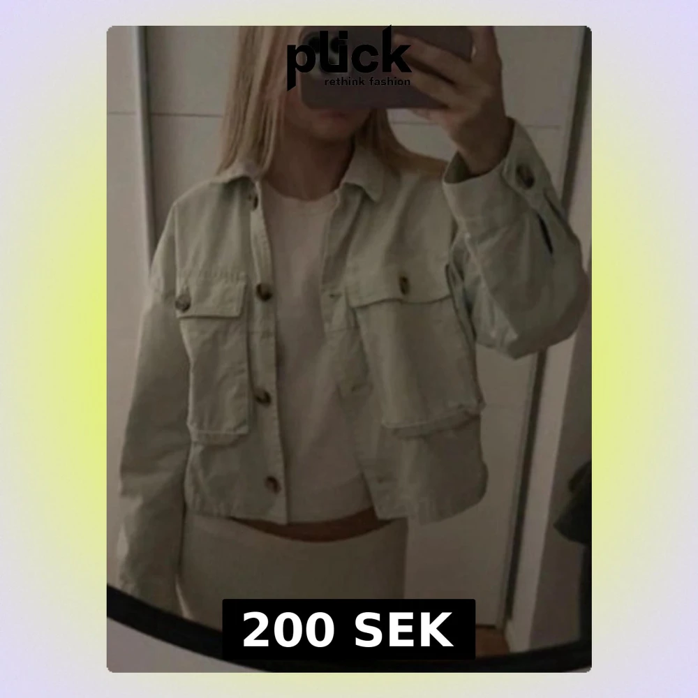 Trendig ljus jeansjacka i croppad modell med stora bröstfickor och knappar framtill. Klassisk krage och knappdetaljer vid ärmslut. Perfekt att slänga över en t-shirt för en avslappnad look.