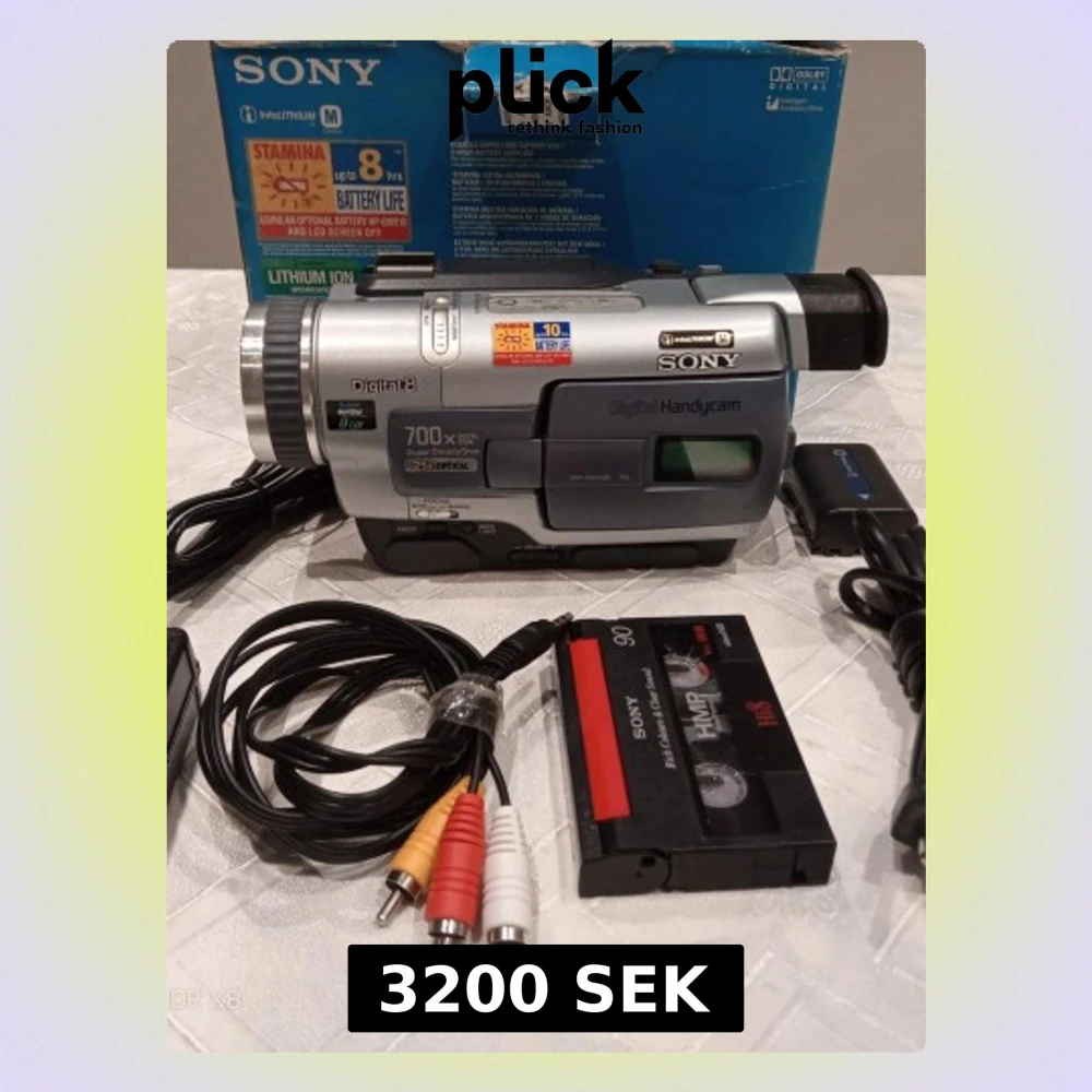 Sony Handycam DCR-TRV230E Digital8 videokamera i silverfärgad plast med svart detaljer. Kameran har 700x digital zoom, LCD-skärm och flera anslutningsmöjligheter. Kameran har bl.a. USB, Firewire/dv/i-Link, S-video och AV utgångar. Medföljer laddare, AV-kablar. Perfekt för dig som gillar retrofilmning och vill digitalisera gamla minnen. Ring vid frågor på 0700441696, Kameran kan skickas, hämtas i Trollhättan eller i Göteborg