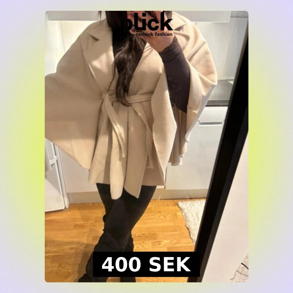 Snygg beige cape-kappa med bred krage och knytskärp i midjan. Kappan har en lös, flödande passform och är tillverkad i ett mjukt tyg som ger en elegant look. Perfekt för dig som vill ha en trendig och bekväm ytterjacka med modern siluett.