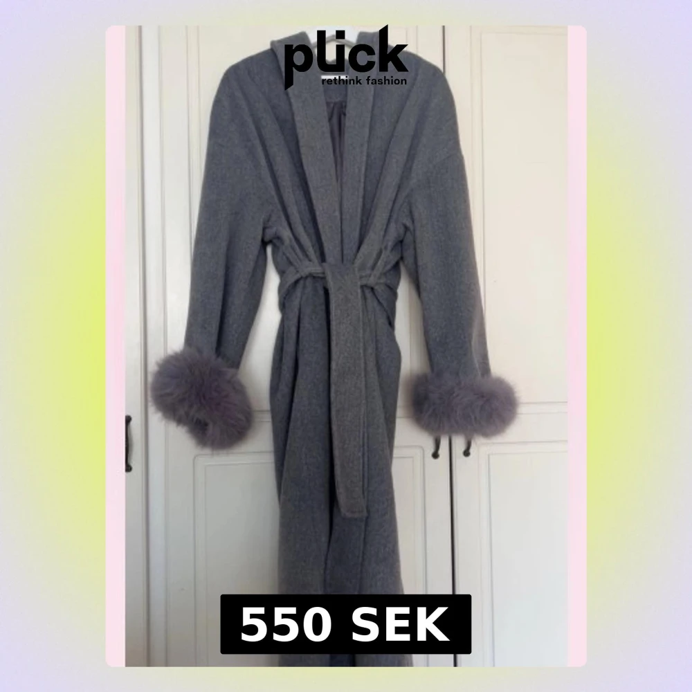 💞Stilren grå lång kappa med skärp i midjan och breda ärmar dekorerade med fluffiga päls arm i matchande grå ton. Kappan har en klassisk krage och rak passform, perfekt för dig som vill ha en trendig och elegant look.💞
