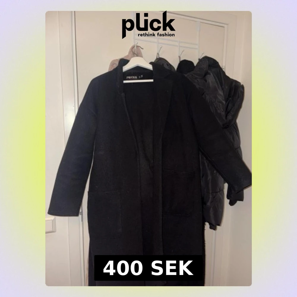 Stilren svart lång kappa från Nelly med raka ärmar och två stora fickor framtill. Kappan har ett bälte i midjan för att kunna knyta och skapa en snygg siluett. Perfekt för kyligare dagar och enkel att matcha med olika outfits. Har använts några gånger men ser ut som ny.