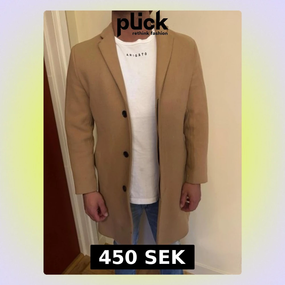 Stilren beige kappa med tre knappar framtill och klassisk krage. Lång modell som passar perfekt till jeans eller chinos. Tillverkad i ullblandning för en mjuk och varm känsla. Enkel design utan synliga fickor för en clean look. Köpt på volt för 3400 kr. Finns en fläck som går bort i tvätt/kemtvätt men inget jag har orkat göra något åt. Se bild. Bortsätt från fläcken är den i jätte fint skick