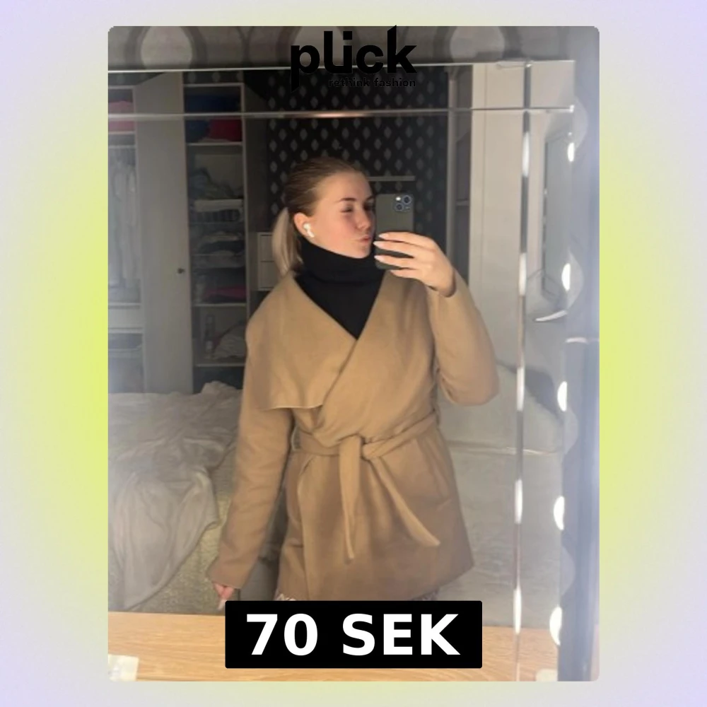 Stilren beige kappa i omlottmodell med brett slag och knytskärp i midjan. Kappan har en rak passform och är perfekt för lager-på-lager. Materialet ser ut att vara mjukt och lite tjockare, vilket ger en lyxig känsla.