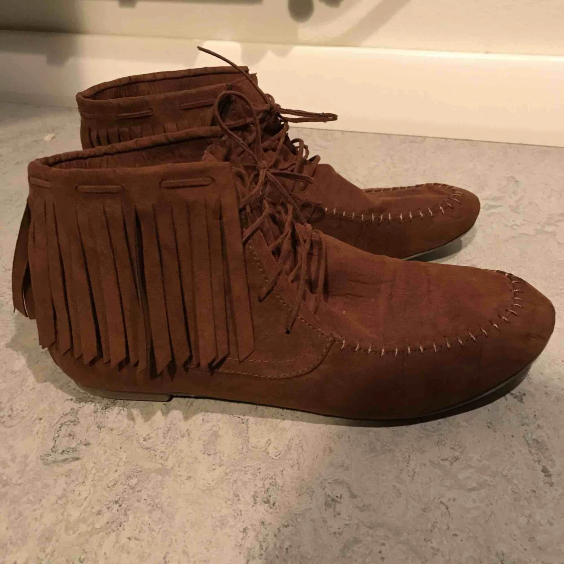 Minnetonka-liknande mockasiner i strl. 39/40. Fint skick, använda endast ett fåtal ggr. Köparen står för frakt.