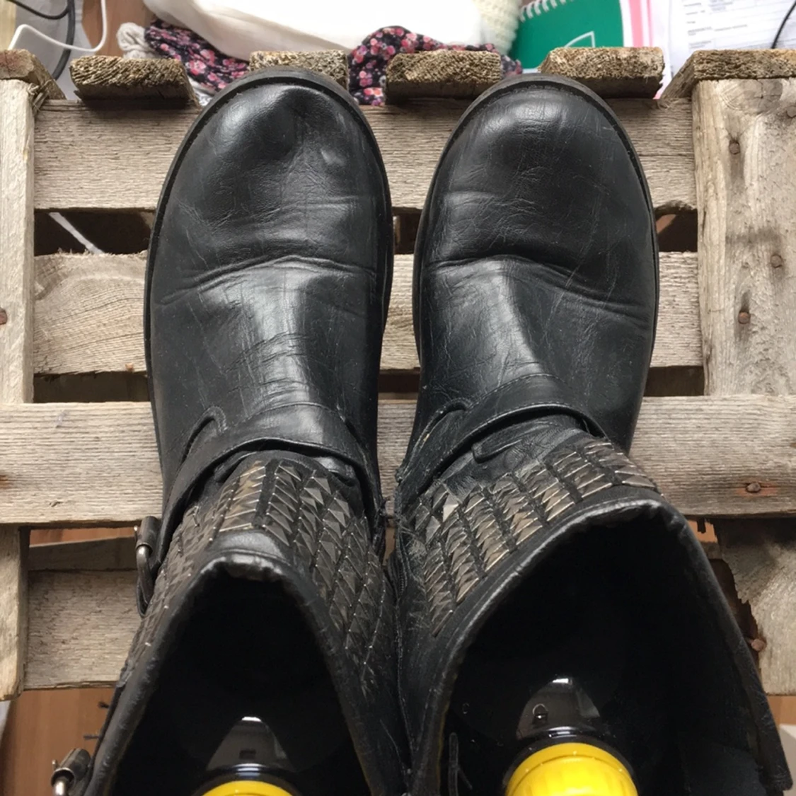 Snygga svarta nitboots Sparsamt använda