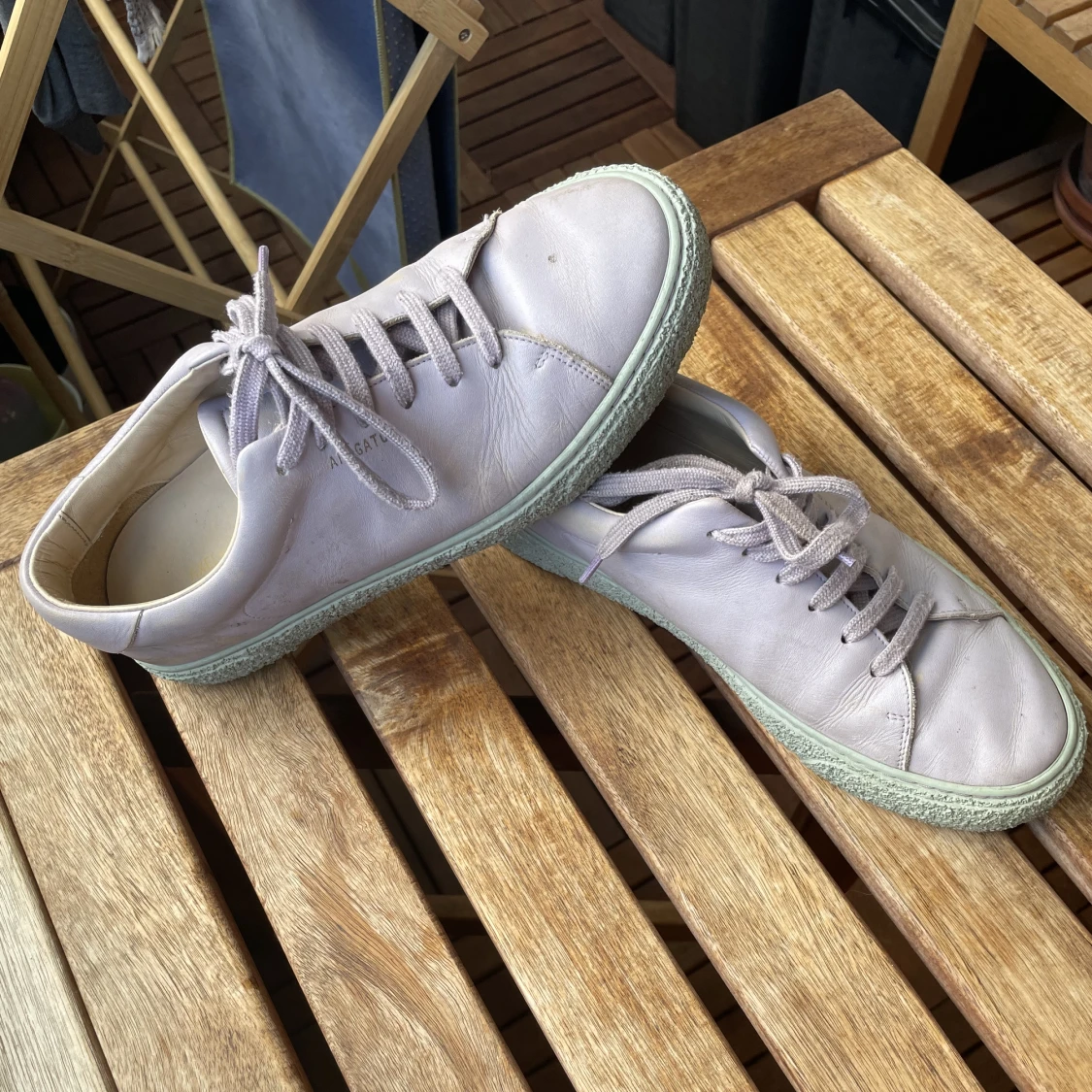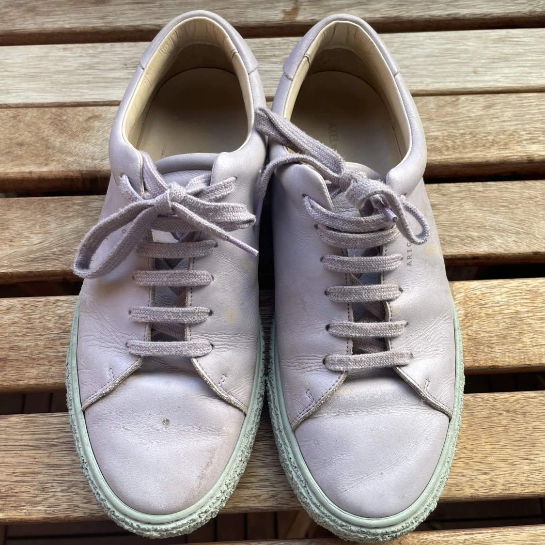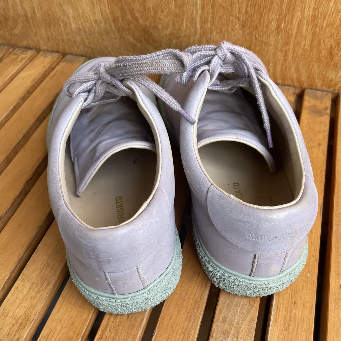 Axel Arigato sneakers i typ lila o ljusgrönt, storlek 41 fast dem passar typ 42-43. Skick 6,25/10, lite smuts men kan lätt tvätta bort! Priset kan alltid förhandlas