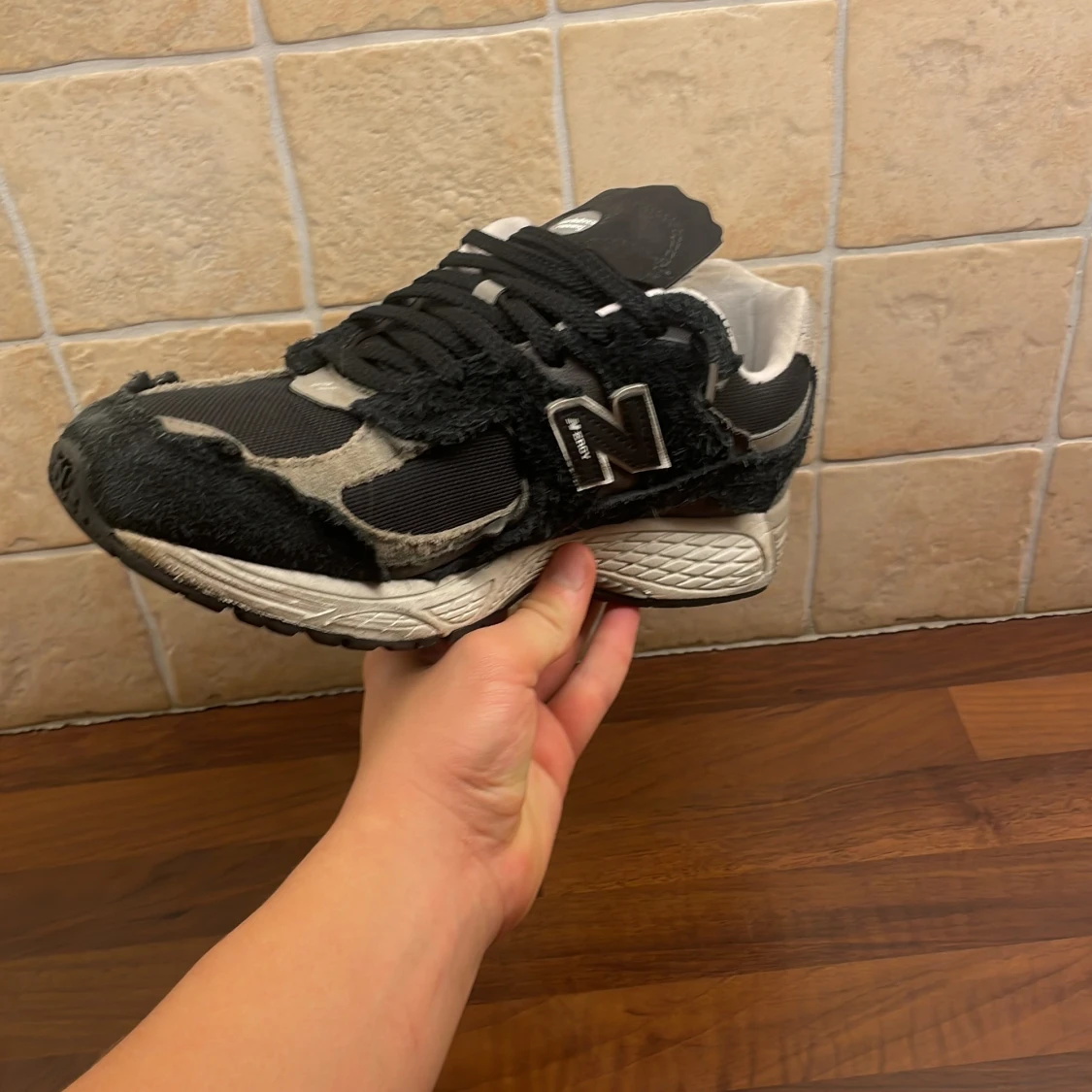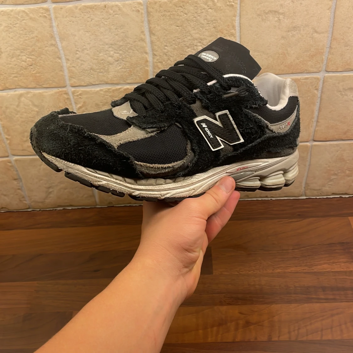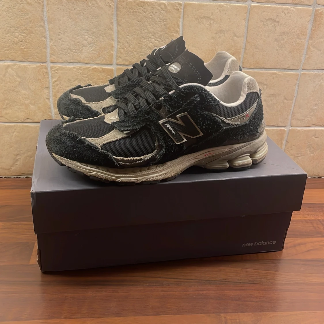 Säljer ett par New Balance 2002R Protection Pack i svart och grått. Skorna har en chunky sula, mesh och mocka-paneler med ruffade kanter för en rå look. Klassisk N-logga på sidan och snörning framtill. Perfekta för dig som gillar streetwear och unika detaljer. Nypris 2.599kr