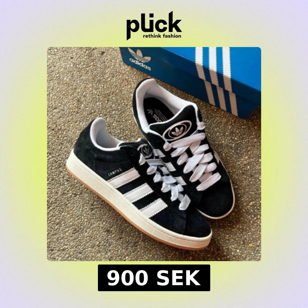 Svarta Adidas Campus sneakers med vita ränder 00, Använda 1 gång endast så i princip nya! Kvitto finns!