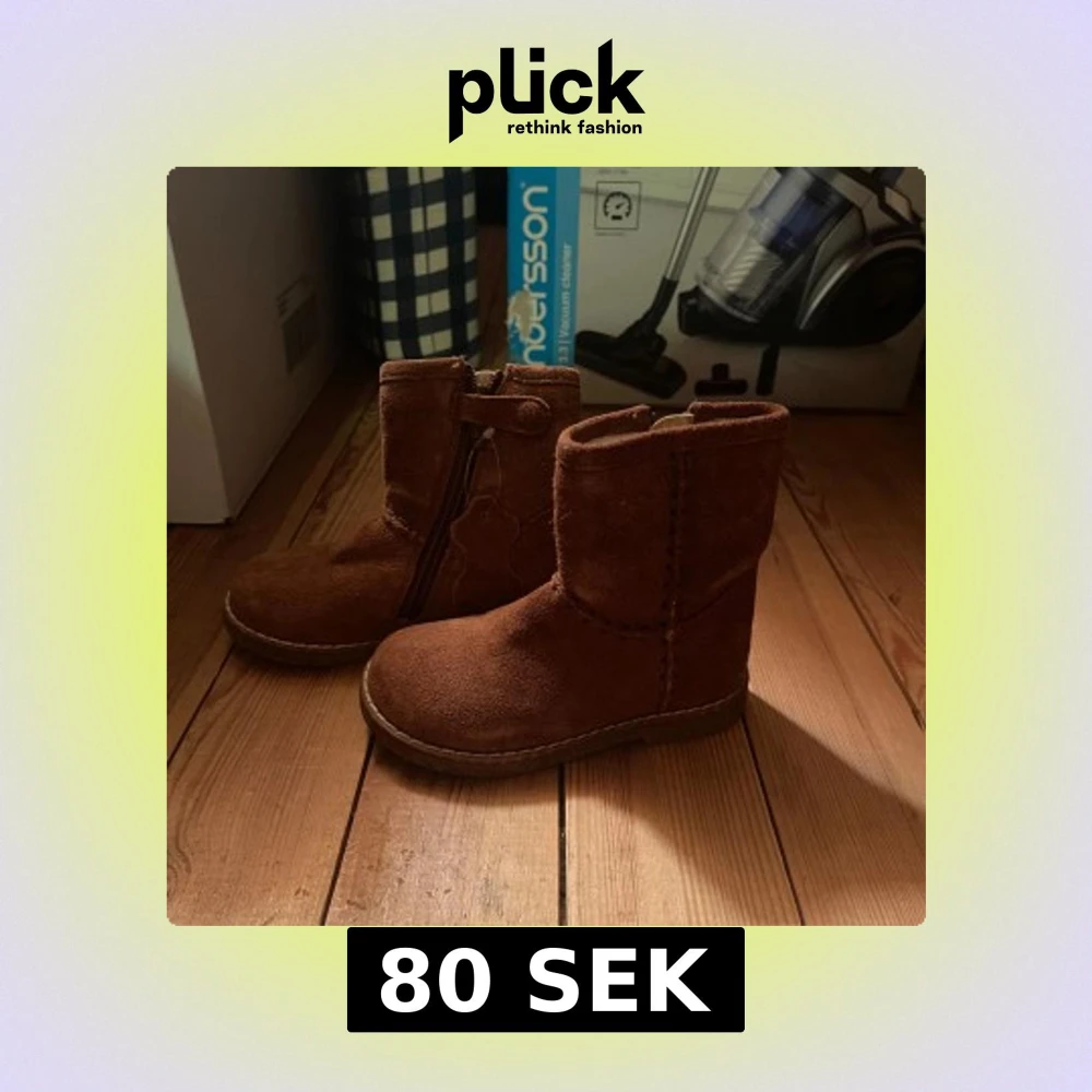 Säljer ett par bruna boots i mocka från Excellent, storlek 23. Skorna har dragkedja på sidan och dekorativ söm längs skaftet. Perfekta för höst och vinter med sin mjuka insida och platta sula.