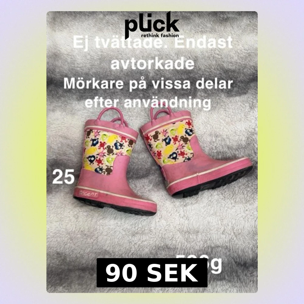 Säljer ett par rosa stövlar från Vincent med roliga figurmönster i flera färger. Stövlarna har praktiska handtag upptill och svart platt sula med grovt mönster. Perfekta för regniga dagar och lek utomhus. Superenkla att dra på själv!🌸Ej tvättade. Endast avtorkade. Mörkare på vissa ställen efter lek. Skav på färg. Storlek 25