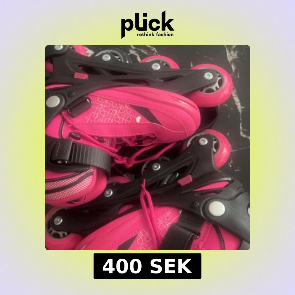 Snygga rosa inlines från Deltaport med vita hjärtan och grafiskt mönster. Skorna har snörning, kardborreband och spänne för extra bra passform. Yttermaterial i syntet och mesh, svarta detaljer och robusta hjul. Perfekta för dig som vill sticka ut på gatan! Storlek 29-33 pris kan diskuteras. Inlines+skydd. Kunden står för frakt
