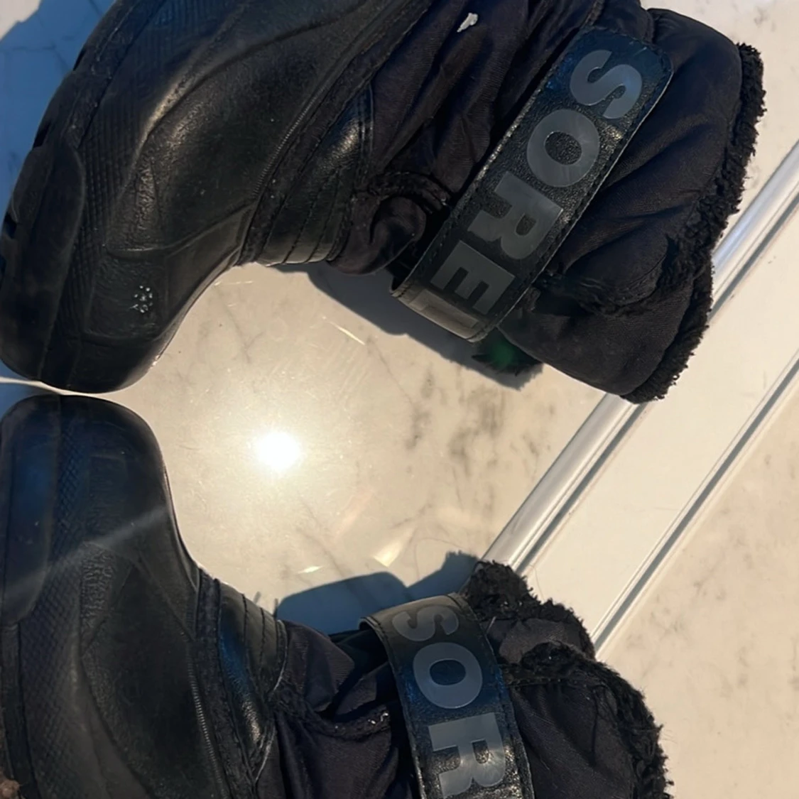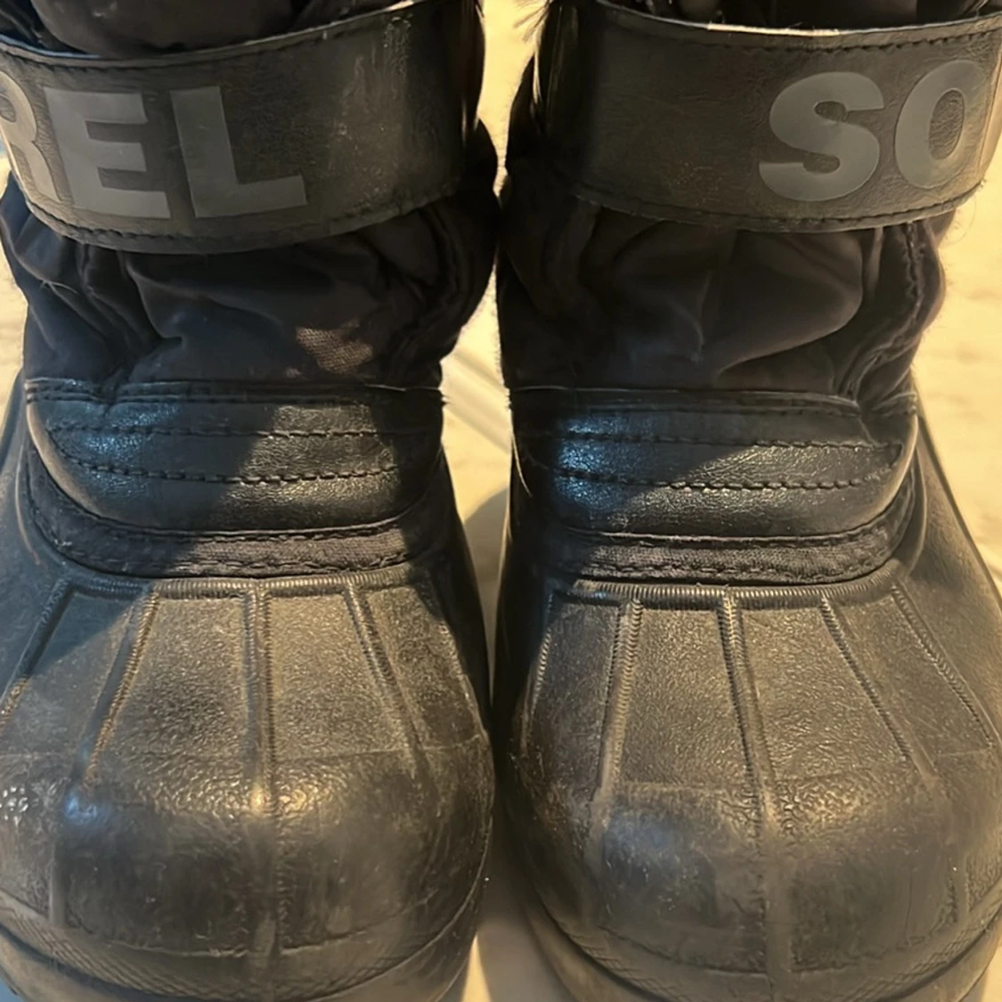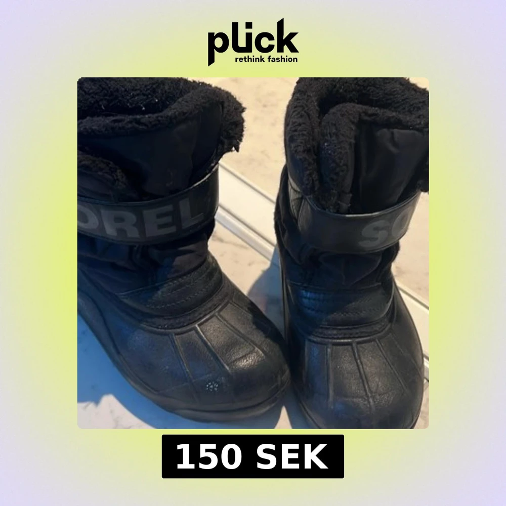 Säljer ett par svarta vinterstövlar från Sorel. De har en robust design med vadderad insida för extra värme. Stövlarna har en bred rem med Sorel-logga och en slitstark sula för bra grepp på hala underlag. Storlek 30