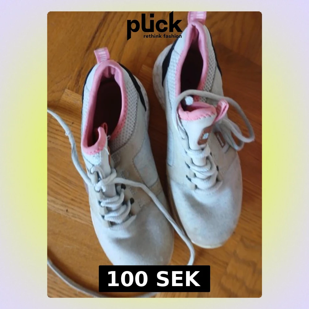 Snygga sneakers i turkos med rosa detaljer och svart parti vid hälen. Skorna har snörning, mesh-tyg upptill för extra andningsförmåga och en platt sula. Perfekta för dig som gillar sportig och fräsch stil.