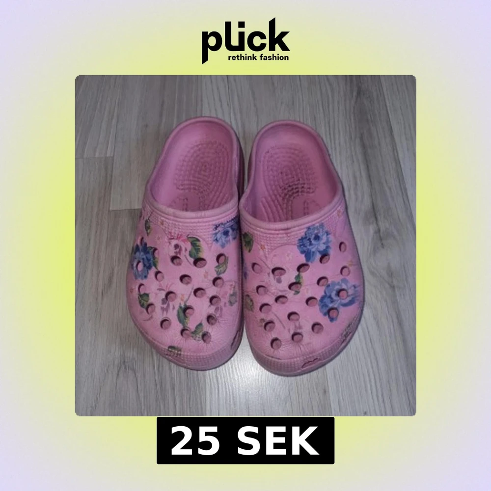 Säljer ett par rosa tofflor/sandaler med blommigt mönster. De har en bekväm passform med perforerade detaljer för ventilation. Perfekta för sommarens varma dagar.
