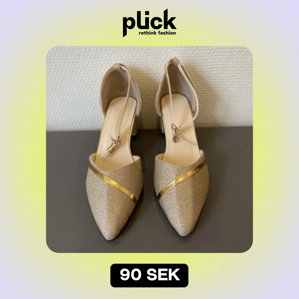 Glittrig/guld damskor. Nyskick och oanvänd. Storlek 35. Jag skickar omedelbärt efter betalning.