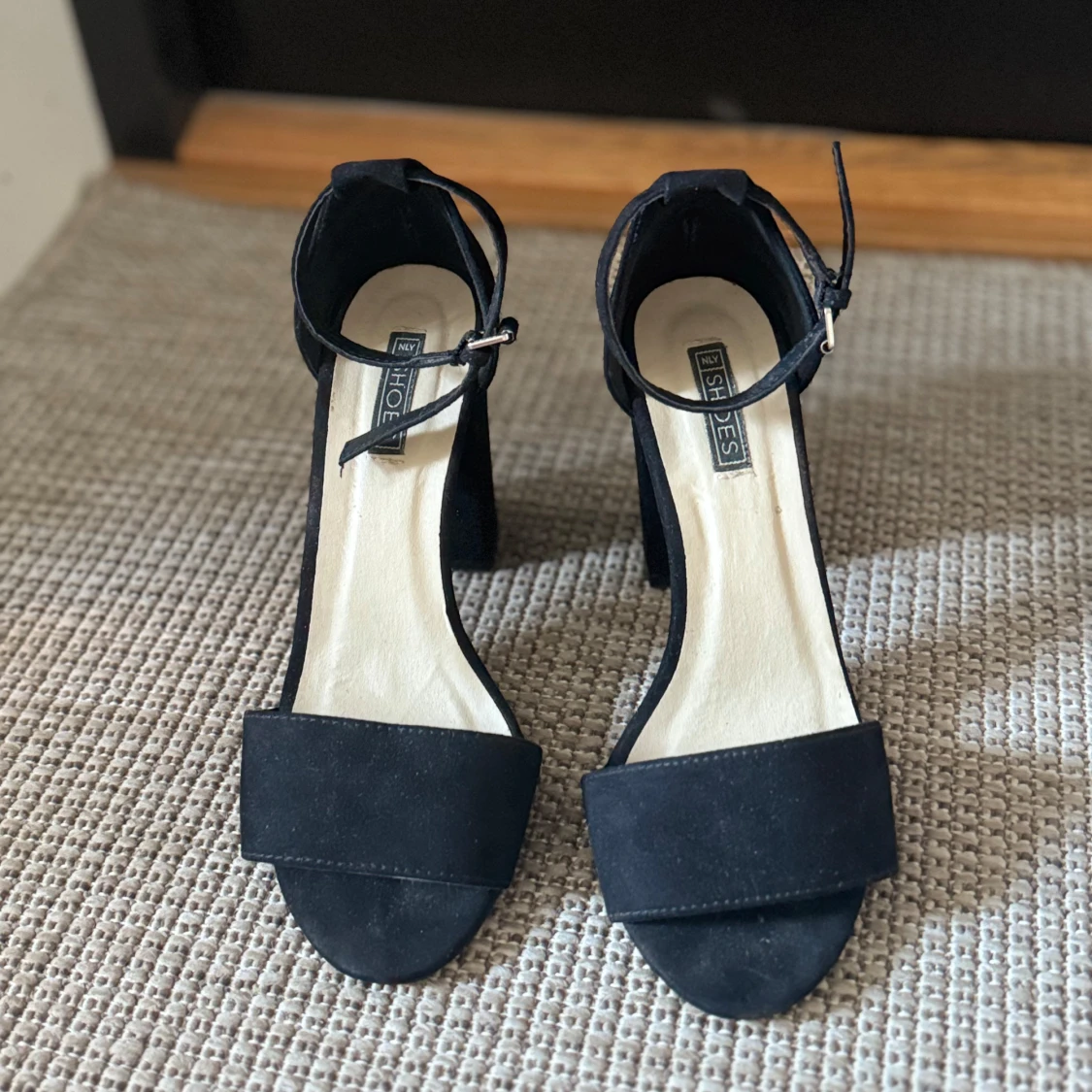 Sandal från NLY Shoes Mockaimitation Rundad, öppen tå Band över tårna Försluts med reglerbart band kring ankel Klädd blockklack Klackhöjd 10 cm . orginalpris 399 kr