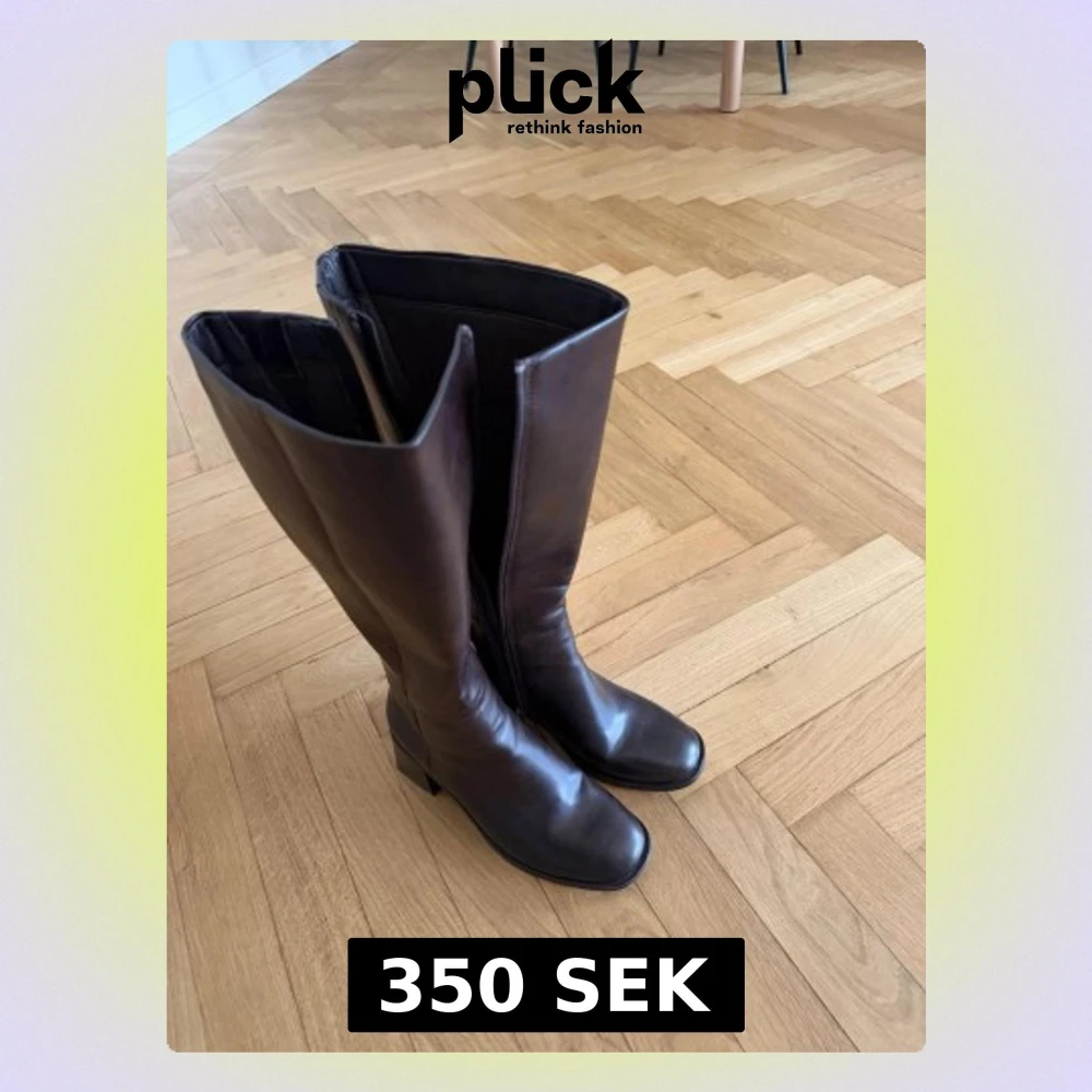 Säljer ett par stilrena bruna stövlar i skinn med fyrkantig tå och bred låg klack. De är knähöga!
