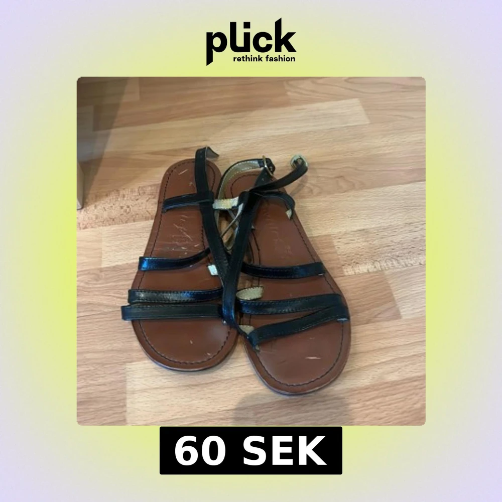 Snygga svarta sandaler från Clarks med flera remmar och en platt sula. Perfekta för sommarens varma dagar. Sandalerna har en stilren design med en touch av guld på insidan av remmarna.