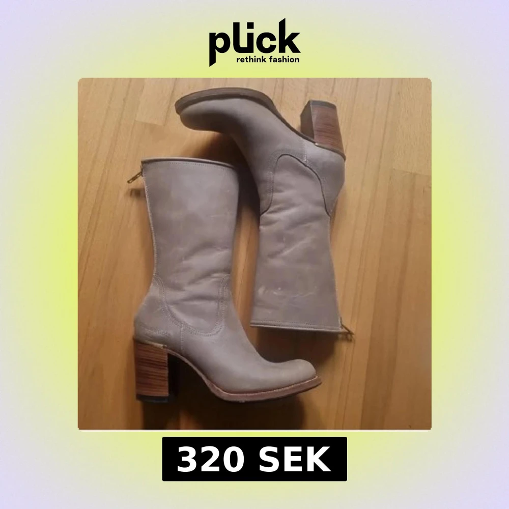 Snygga Primeboots i skinn med markerad träklack och dragkedja baktill. Klassisk rund tå och stilren design. Storlek 36.