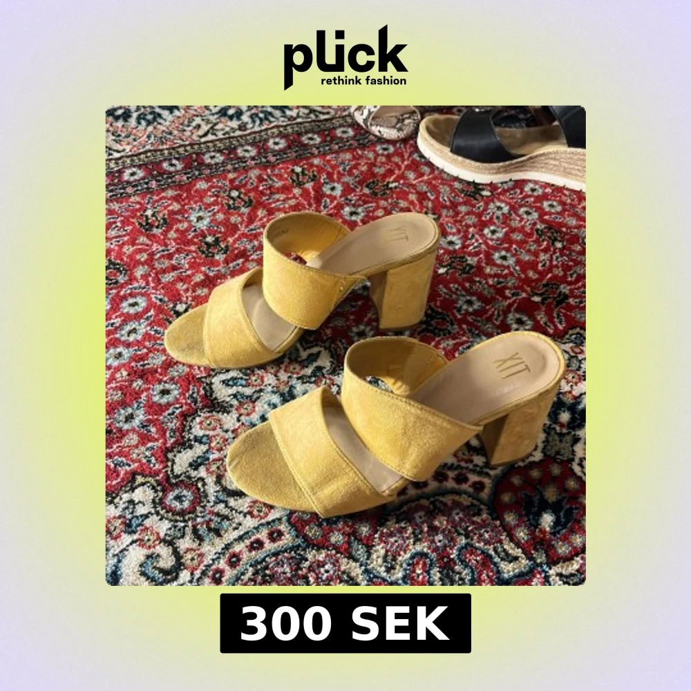 Snygga gula sandaler med klack från XIT. Tillverkade i ett mjukt material med öppen tå och bred rem över foten. Perfekta för att liva upp din outfit med en färgklick.