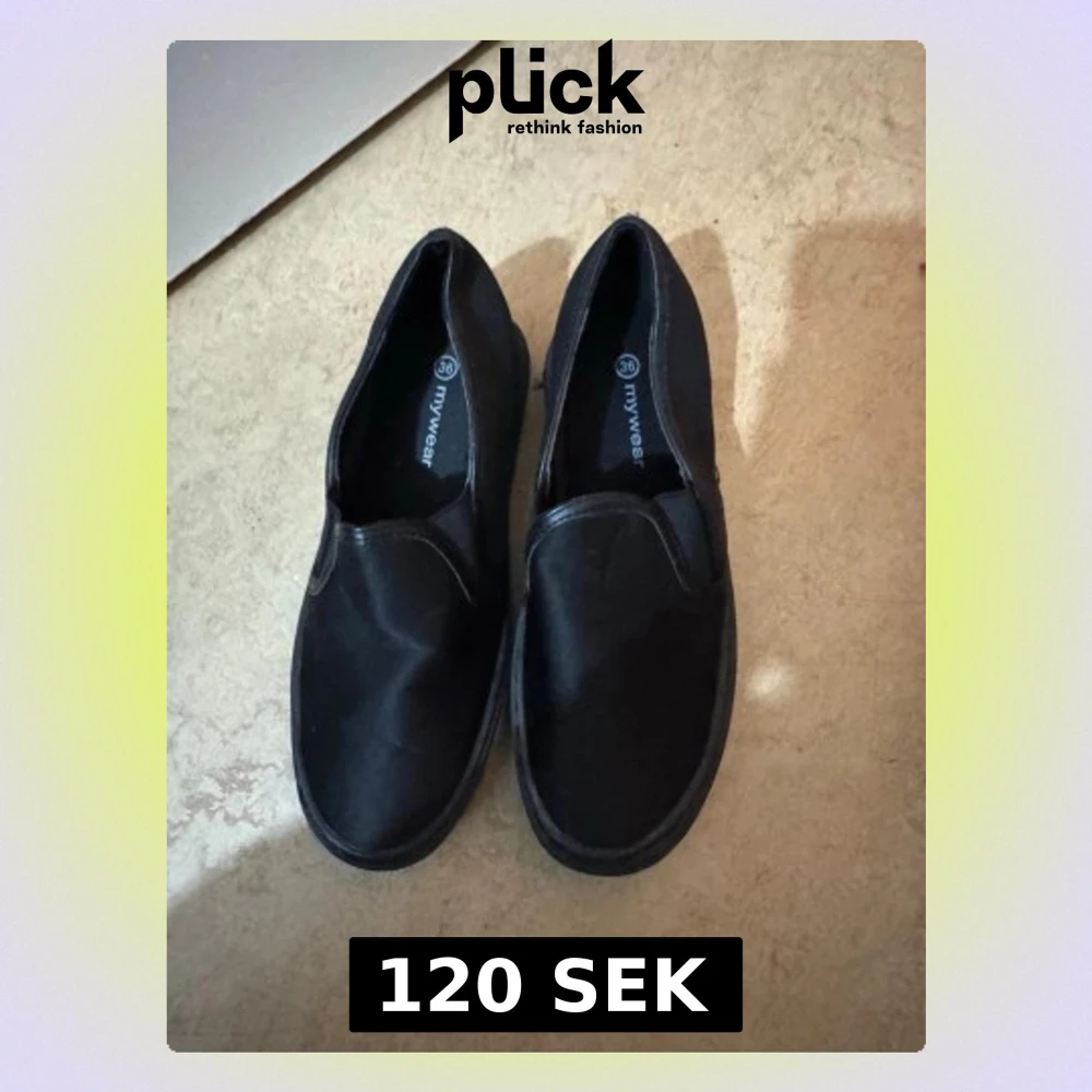 Ett par svarta skor i stl 36 säljs för 120 kr.