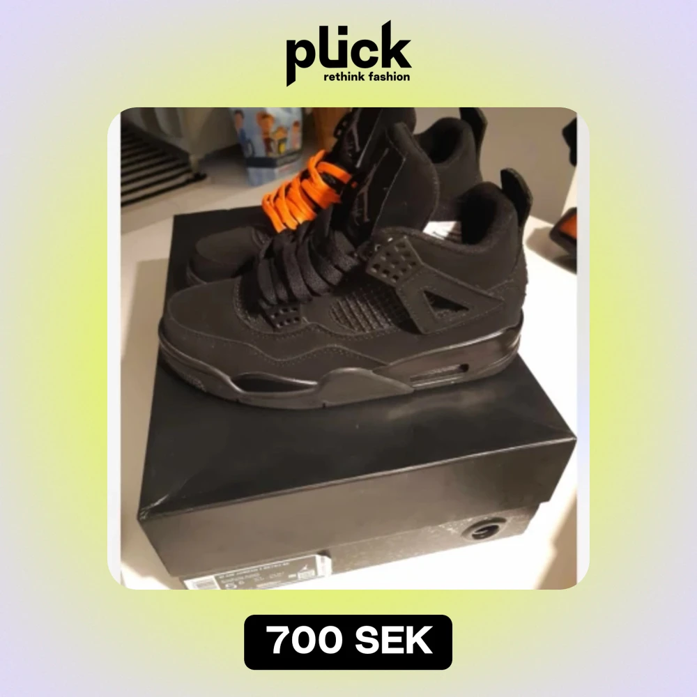 Hej! Nu säljer vi ett par sällsynta Jordan 4, OBS det är en replika men man ser inte det, väldigt bra matrial den är inte liten/stor i storleken ingår box och tag.